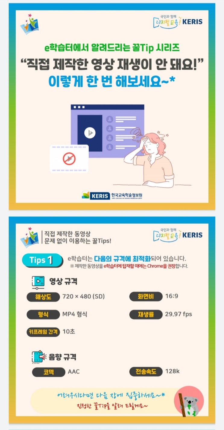 그런데 생각보다 e학습터 동영상 업로드 관련 자료들이 없다. 그 가운데 네이버 블로그 냥쌤의 글이 내가 원하는 답을 보여줬다.