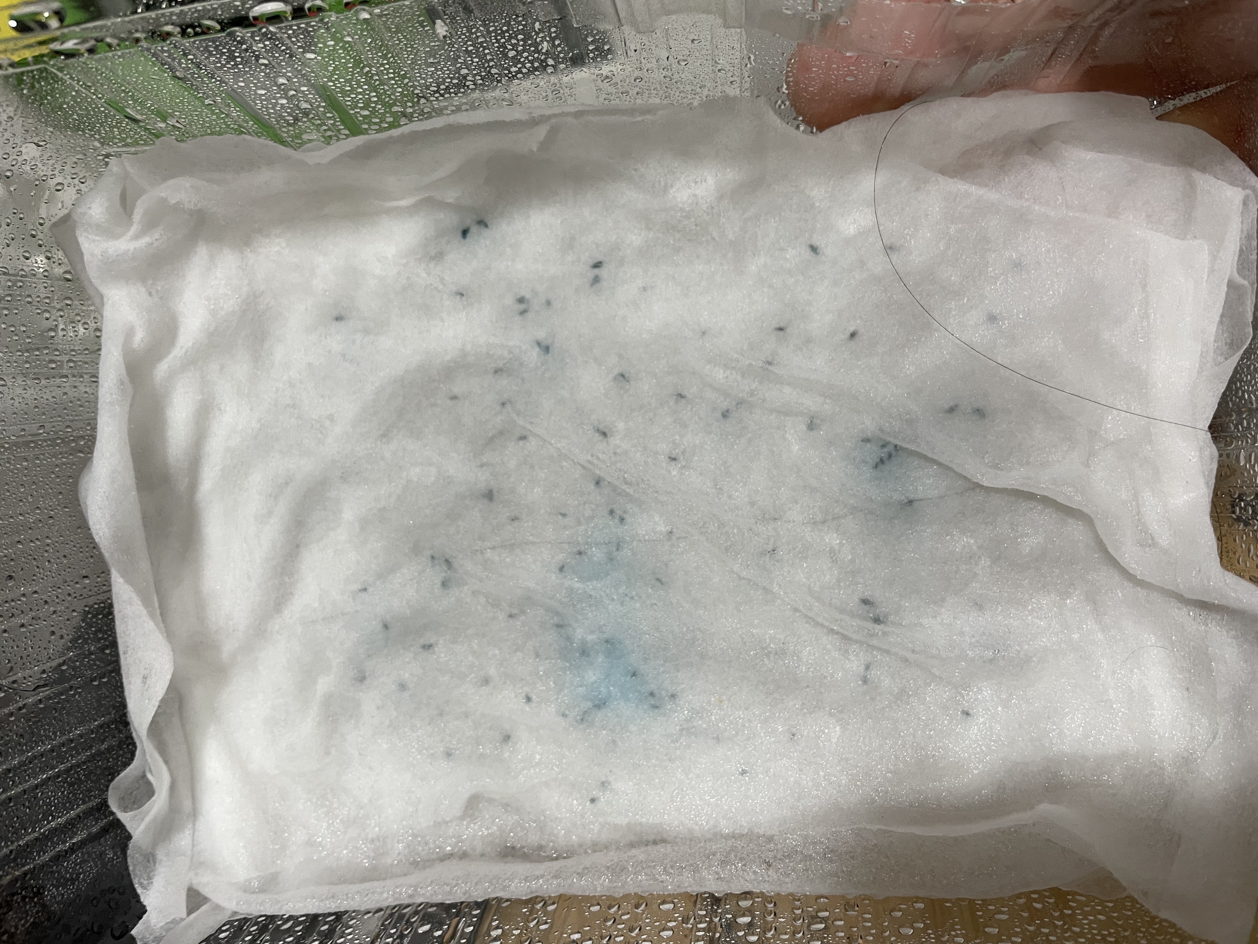 야로우는 솜파종을 흉내내어 사용한 물티슈를 잘 빨아서 솜 대용을 해봤다. (나올까?) 야로우는 일단 싹이 나오면 키우기 쉽다고 블로그들마다 칭찬이 가득하니 지켜보겠다. 야로우는 우리나라에서 톱풀이라고도 불리우며 주문한 품종은 파스텔이라고 불리는데... 뭐가 파스텔인지 모르겠지만, 꽃씨를 물티슈 위에 올려 놓으니 파란색으로 물든다.
