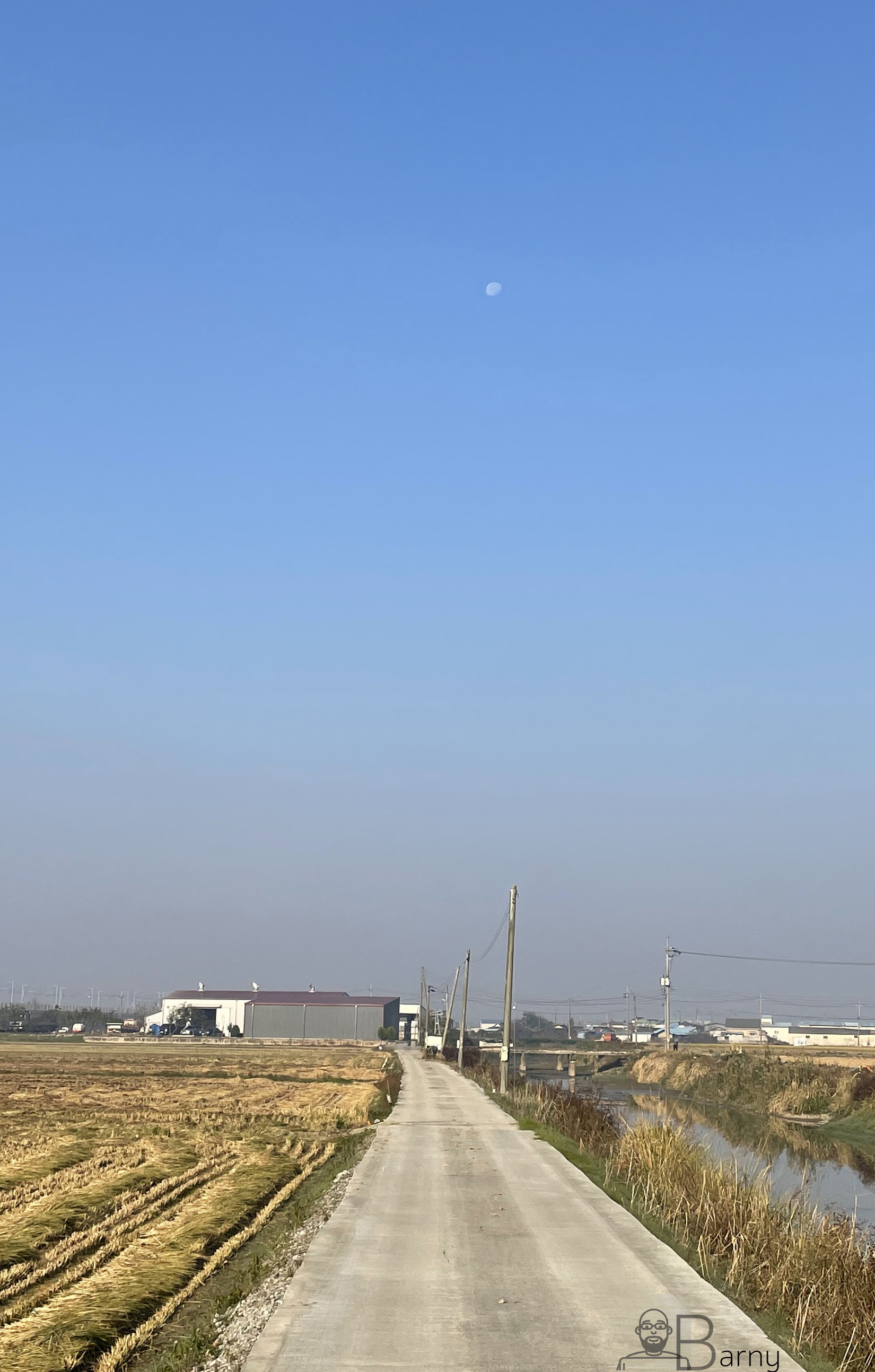 우리집에서 5분정도 걸어 나오면 조그마한 내천을 지나 새로 생긴 철길을 따라 걸을 수 있다. 오전 8시 35분을 넘어서면 익산에서 서울로 가는 장항선 새마을호와 잠깐 동행할 수 있다. 아이들과 일찍 등교길을 가지면 누릴 수 있는 특권이다. 그리고 당분간은 저 달도 내 아침 동행이 된다. 하얀 백로 가족들은 내가 나타나면 후다닥 아침 요기를 마치고 떠나간다. 본의아니게 그들의 아침식사를 방해한 모양새다.