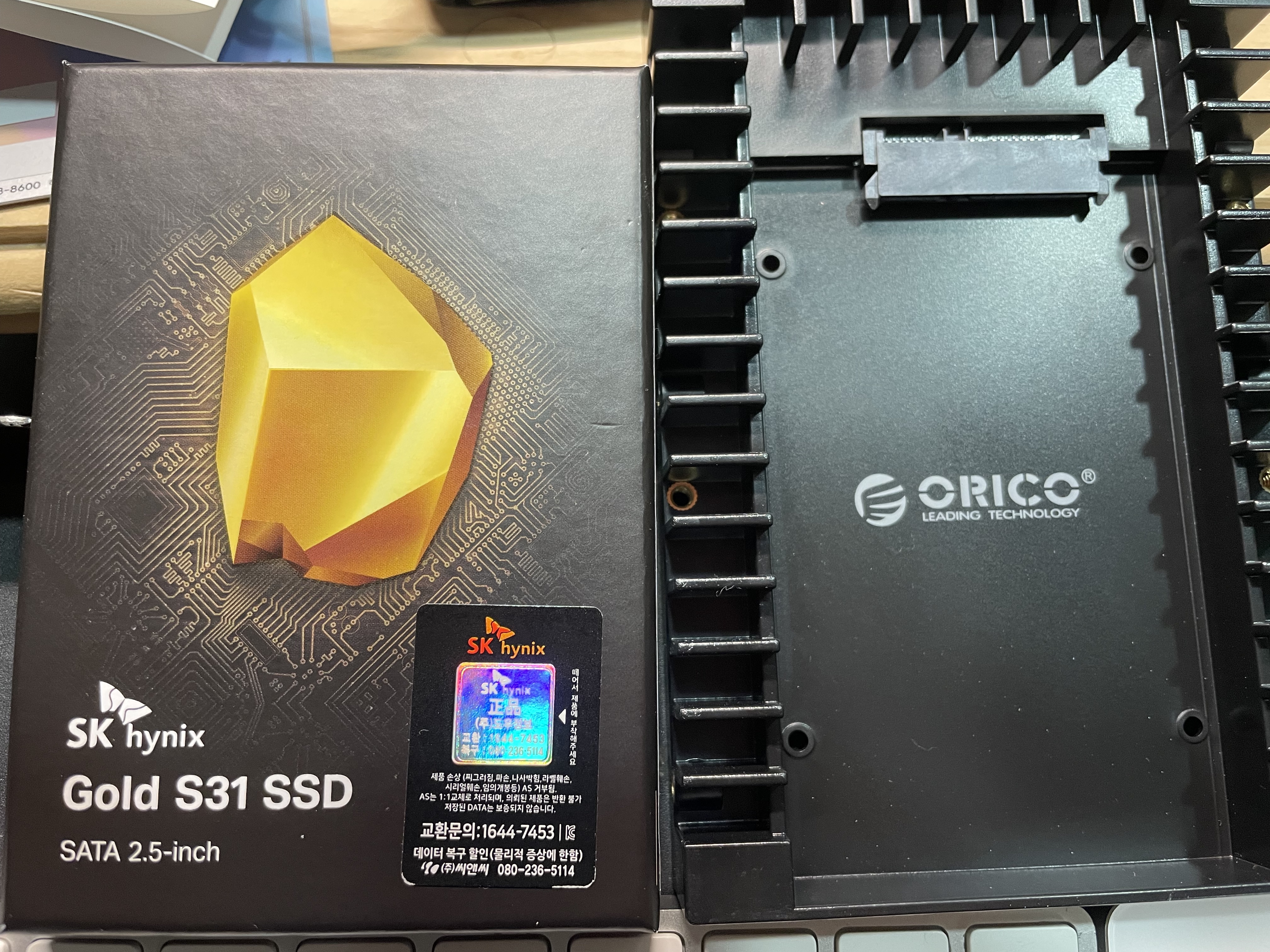 3.5인치 브라켓은 오리코 제품을 선택했습니다. 그냥 플라스틱으로 구매하면 배송비랑 합쳐서 3-4천원이면 구매하는데, 그냥 오리코를 만원가까이 주고 구매했습니다. 오리코 하면, 썬더볼트 외장하드가 생각나서... ㅎㅎ 일종의 감성이랄까? 그냥 잘 만들겠지 하고 구매했는데요... 실망입니다. ㅎㅎ 나름 좀 깔끔할줄 알았는데, 2% 아쉬워요. 그래도 금속 브라켓이라 SSD 발열에 조금이나마 도움이 될거 같습니다.