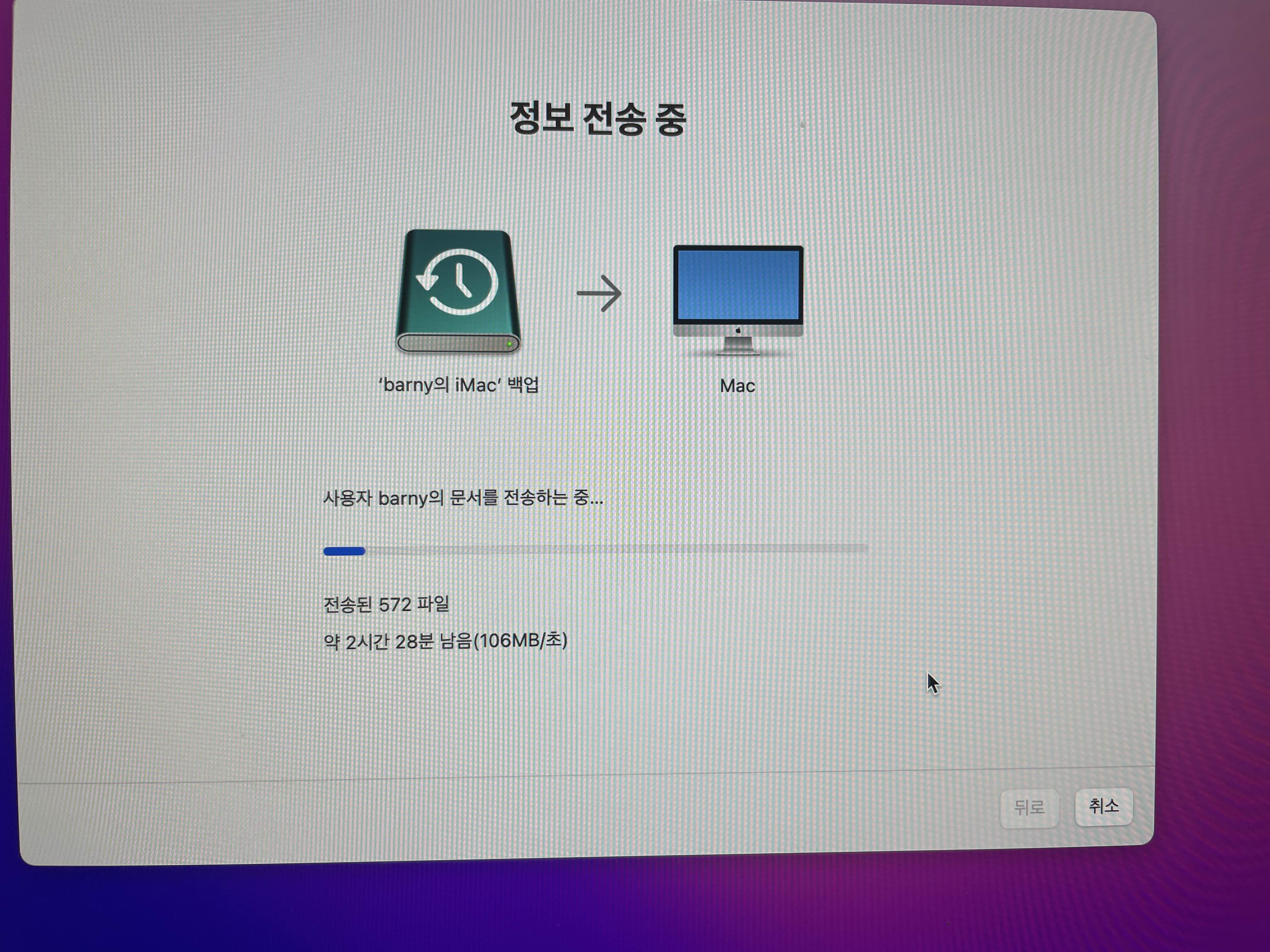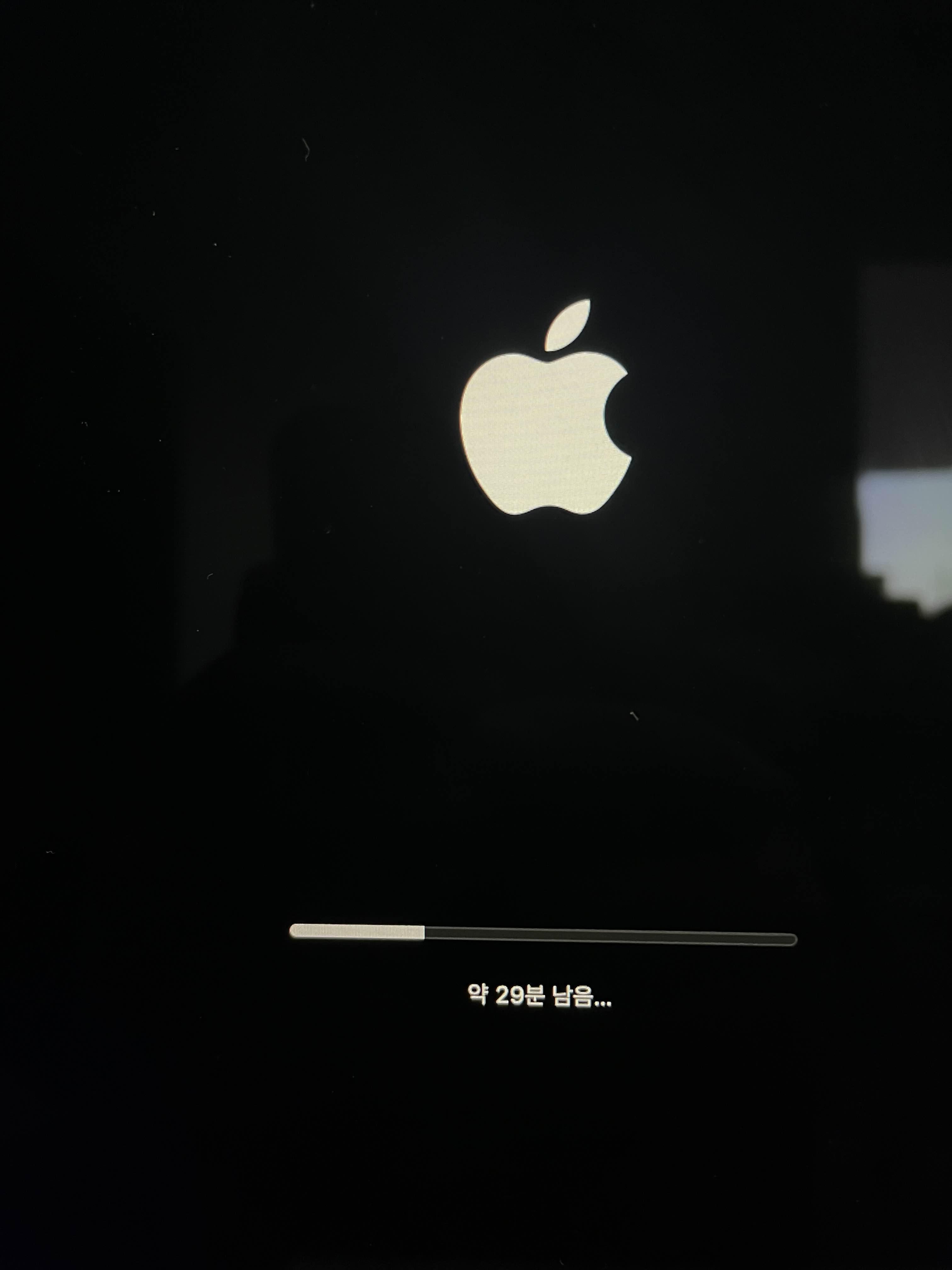 시작전에 우려와 달리 큰 어려움없이 두개의 SSD 모두를 잘 교체했습니다. 양면 스티커로 부착전에 먼저 시험 구동을 했고, 바로 OS를 깔았습니다. 보통 타임머신으로 복구가 가능하지만, 저의 경우엔 Mac OS 12(Monterey)를 새로 깔고, 마이그레이션을 해줬습니다. (왜 이렇게 작업을 두번하게 되었을까요...) 그 작업이 끝나고나서 모니터를 양면테잎으로 고정시켰고, 다시 부팅해서 이전에 백업해둔 자료를 마이그레이션했습니다. 전체 수리에 걸린 시간이 2시간 반 정도 걸렸네요. 그리고 인스탈과 백업은... ㅠ.ㅠ 생각보다 오래 걸립니다. 게다가 중간에 부팅 중에 자꾸 꺼지는 문제도 생겼습니다. 혹시 백업때문에 연결한 외장하드 때문인가 싶어서 분리해주니 다시 잘 되네요. OS 인스탈하는데만 한시간 걸렸습니다. 마이그레이션까지 하면 하드웨어 설치에 들어간 시간 못지 않게 소프트웨어에 걸리는 시간도 만만치 않네요.