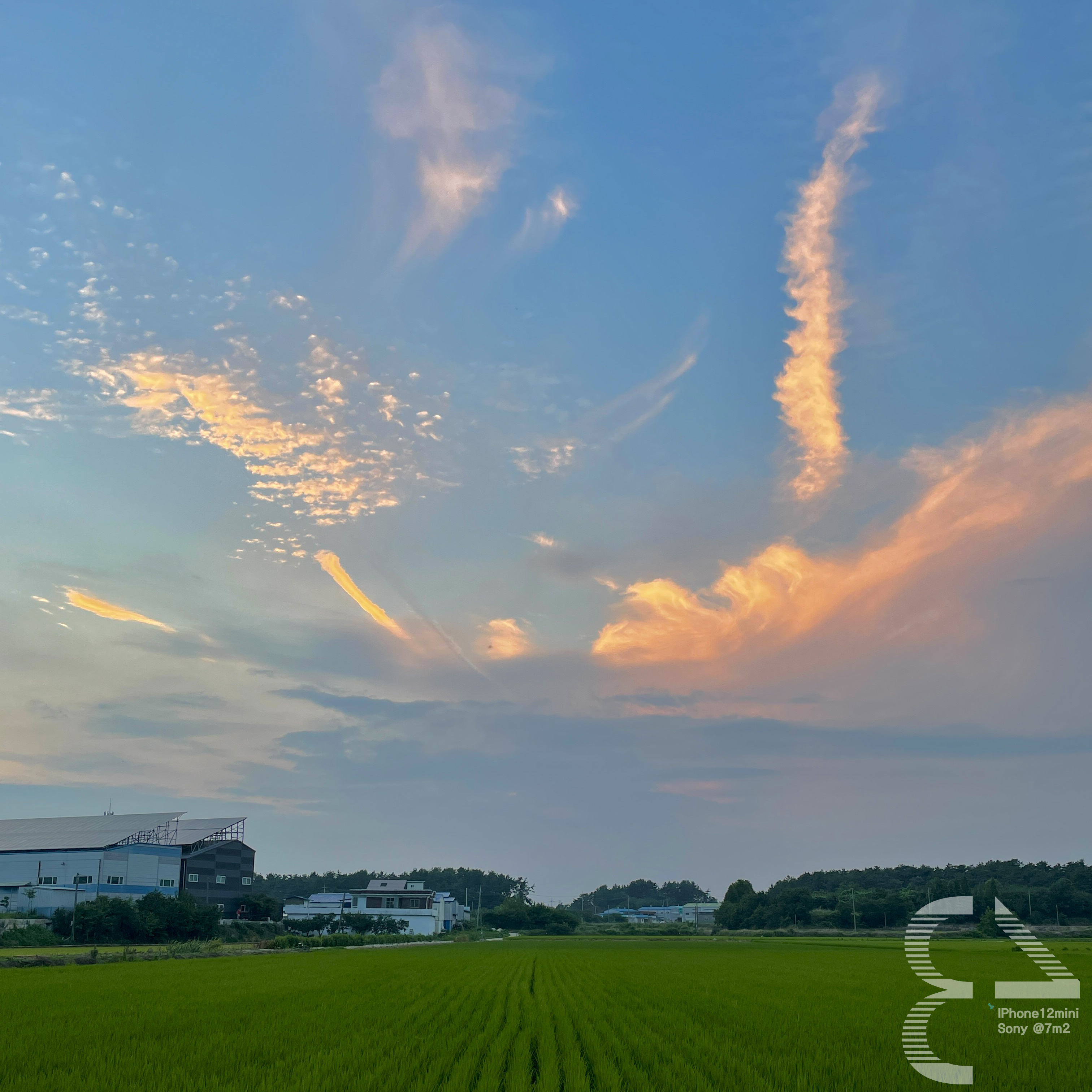 공기중에 습도가 높아서인지 하늘색이나 태양빛의 산란때문인지 붉은빛이 감돈다. 그렇다고 하더라도 한낯의 쪽빛하늘과 훌렁훌렁 구름들이 지나가는 모습은 언제 봐도 질리지 않는다. 2022. 5.29-7.7. 사이의 하늘, 그리고 아래 하늘...