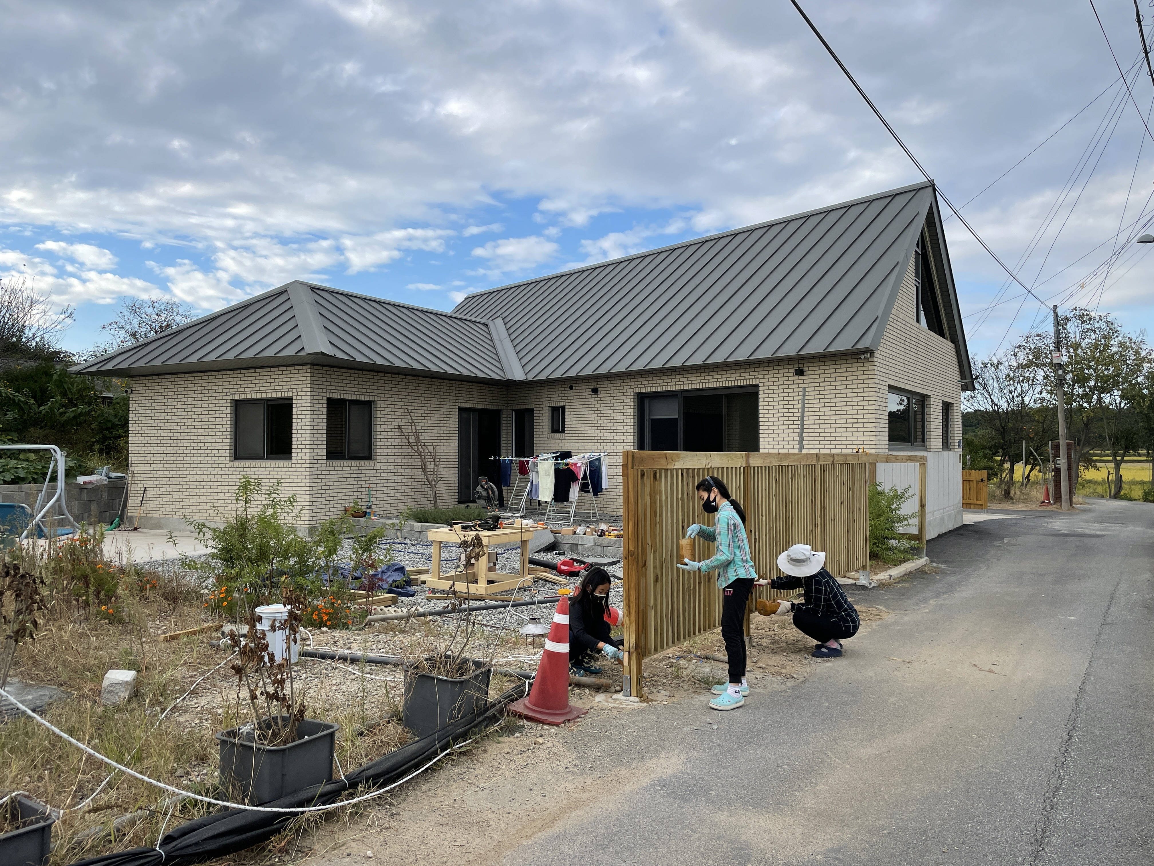10월 8일. 기초를 심은지 10일만에 마무리를 지었다. 오후에는 가족 모두 달려들어 오일스테인을 칠했다. 작업을 하면서 작살나무를 심은 화단에도 큰 도화지처럼 방부목으로 액자 프레임 작업을 추가했다. 이번 작업에서 끼워맞추는 부분을 파내는 일이 많았는데, 끌 뿐만 아니라 멀티커터기도 동원되어 작업을 했다. 생각보다 재미있었지만, 끌이나 대패를 잘 갈지 않으면 적업 난이도가 확 올라가는 걸 깨달았다. 그리고 목공의 꽃은 아마도 끌이 아닐까 싶다. 결국 끌질 잘하면 작품의 질도 확 올라간다는 걸 배웠다. 끌질을 어디서 잘 배울 수 있을까? ㅎㅎ