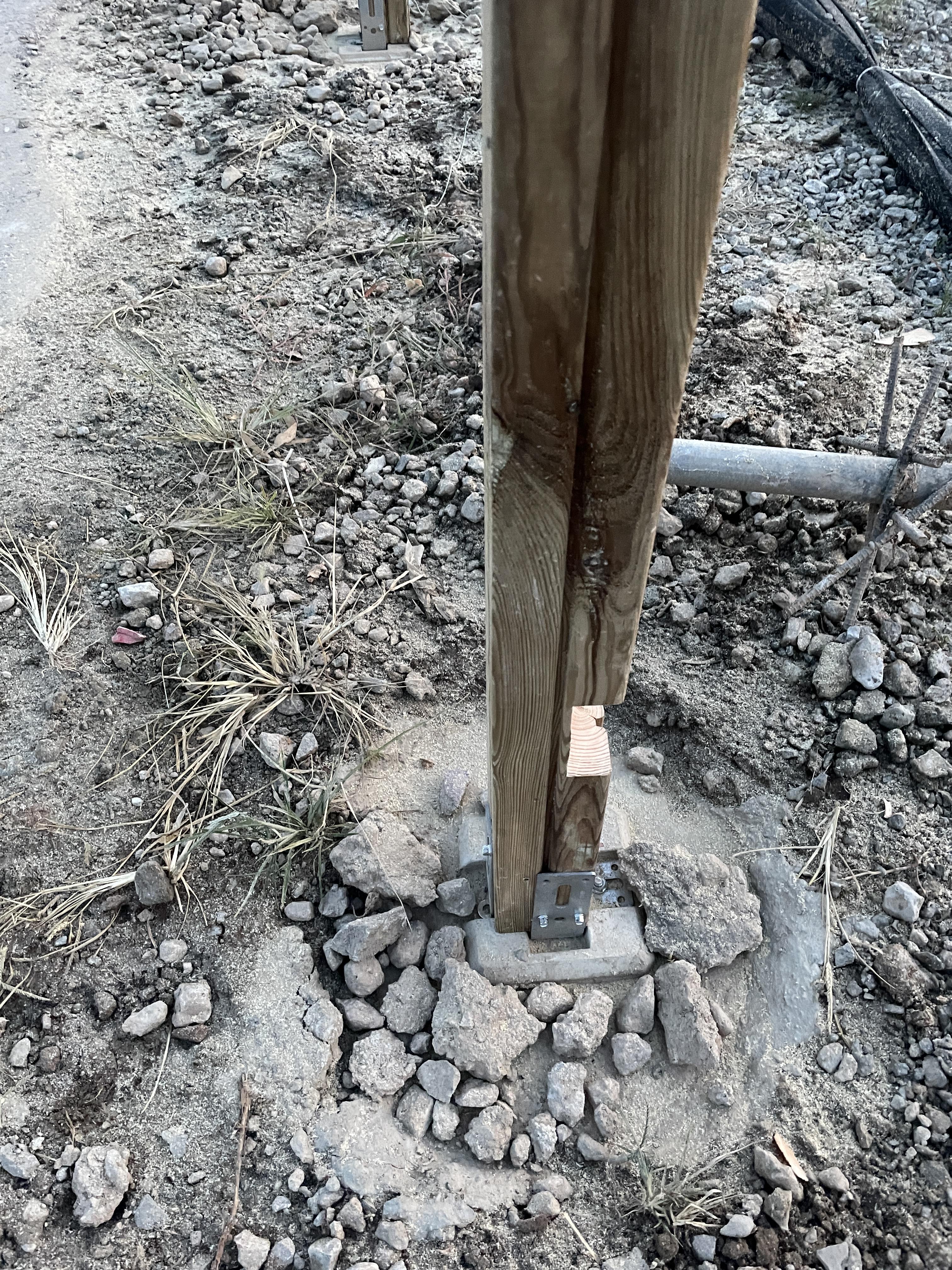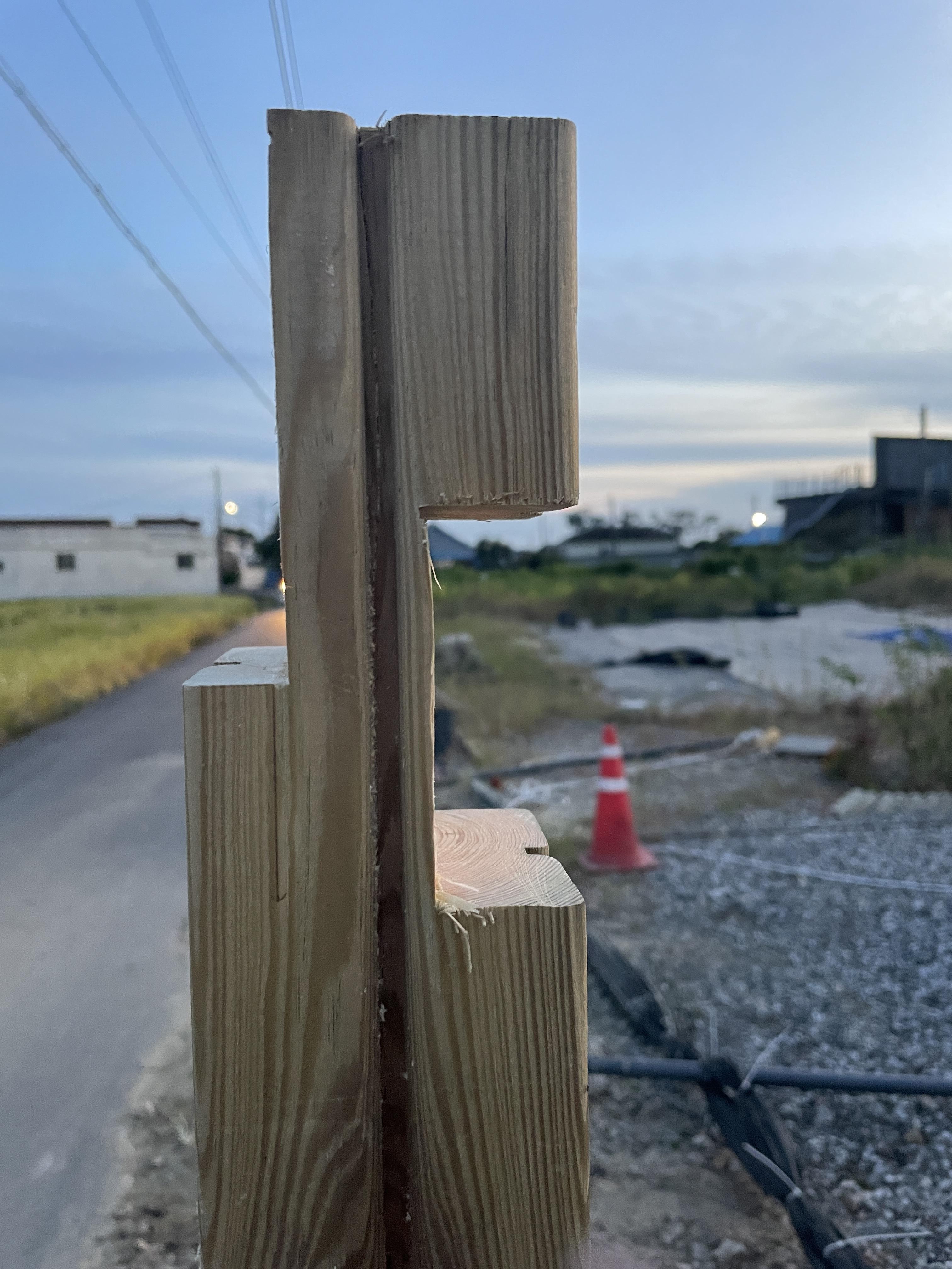 주차장 담장과 달리 전면부쪽은 묵직하고 견고한 느낌을 주고 싶었다. 기본적으로 방무목 기둥은 2m로 설정했고, 약 7m정도를 두를 예정이다. 전면부 모두를 막으면, 앞으로 땅을 기경할 때 필요한 동력기계들이 드나들 곳이 필요해서 문이 있어야 할 곳은 따로 공사를 하지 않기로 했다. 그러니까 임시로 가림막을 쳤던 면의 2/3정도만 쌓는 셈이다. 마음 같아서는 큰 문도 같이 만들고 싶었지만, 이건 좀 더 돈이 생기면 해 볼 예정이다.