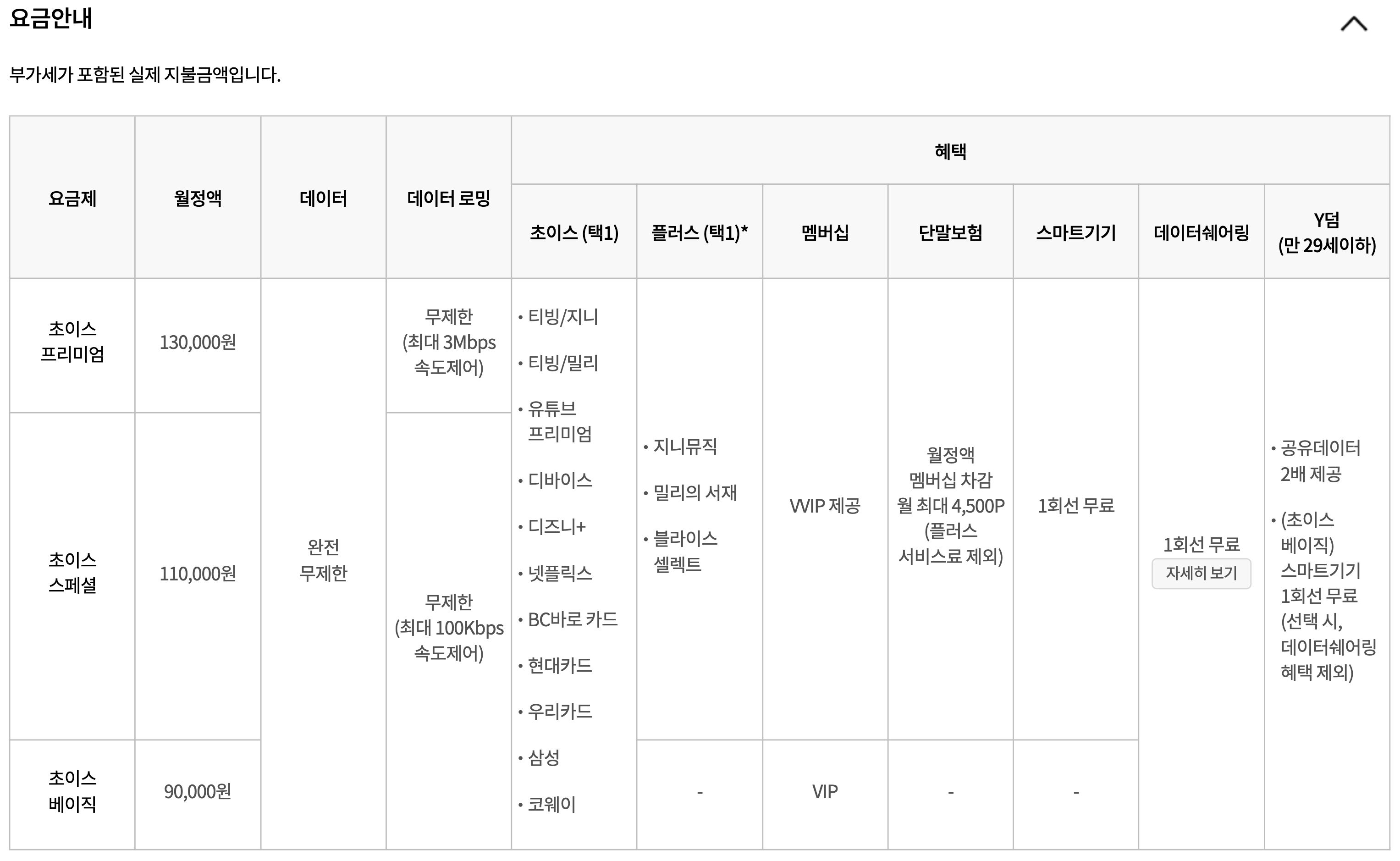 KT요금제는 다음달에 전환이 가능해서, 한달동안 초이스 프리미엄으로 요금제를 올려쓰는 것도 나쁘지 않다. 물론 초이스 요금제를 썼을 경우에 해당하는 이야기다. 이런 저런 이유로 11만원 요금을 내고 있는 상황이라서, 내 경우 프리미엄 선택에 2만원도 안들어가서 바로 선택할 수 있었다.